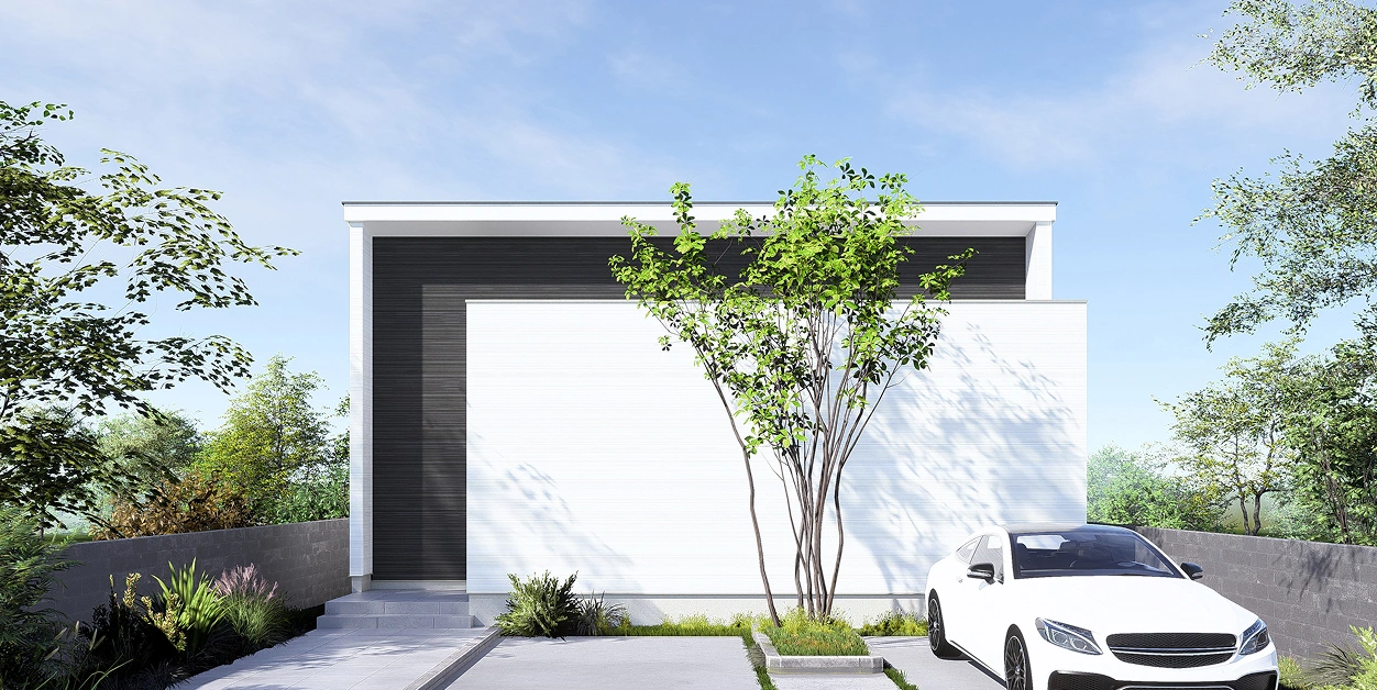 リビングに設置した大きなワイドサッシが、室内と庭に心地よい一体感をもたらします。たっぷりの光が差し込む広々としたLDKは、家族が思い思いに過ごせる開放的な空間です。また、玄関とキッチンの両方からアクセスできる2WAY動線の洗面室や、大型WICなど、家事効率を高める工夫も満載。自然の潤いを感じながら、機能的でゆとりある日常を叶えるプランです。